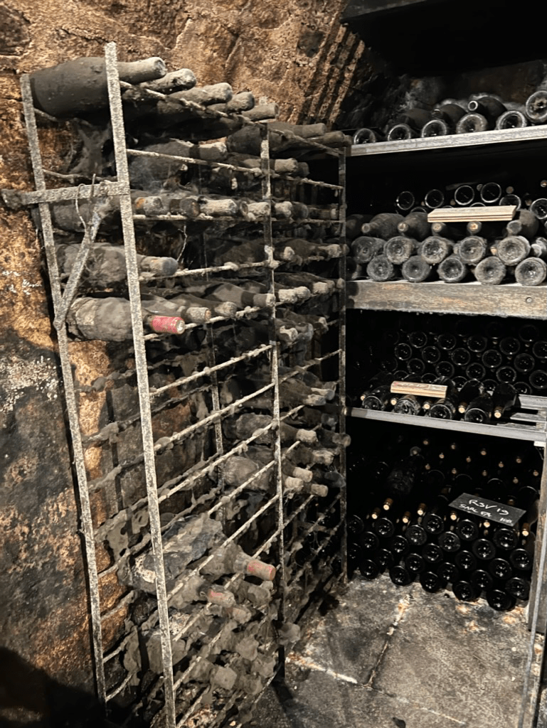 After lunch and more discussion with Philippe we went to see one of the vineyards in Aloxe Corton, and spent an hour with his son in their cellar. They had just bottled their 2020 (no labels yet). Nothing is labeled until shipment because the natural dampness of the cellars ruins the labels. He amazed us by opening six bottles for various tastings. As we concluded he said “I cannot drink all of these bottles we opened tonight. Please choose on to take home as my gift. We chose a Grand Cru blanc.