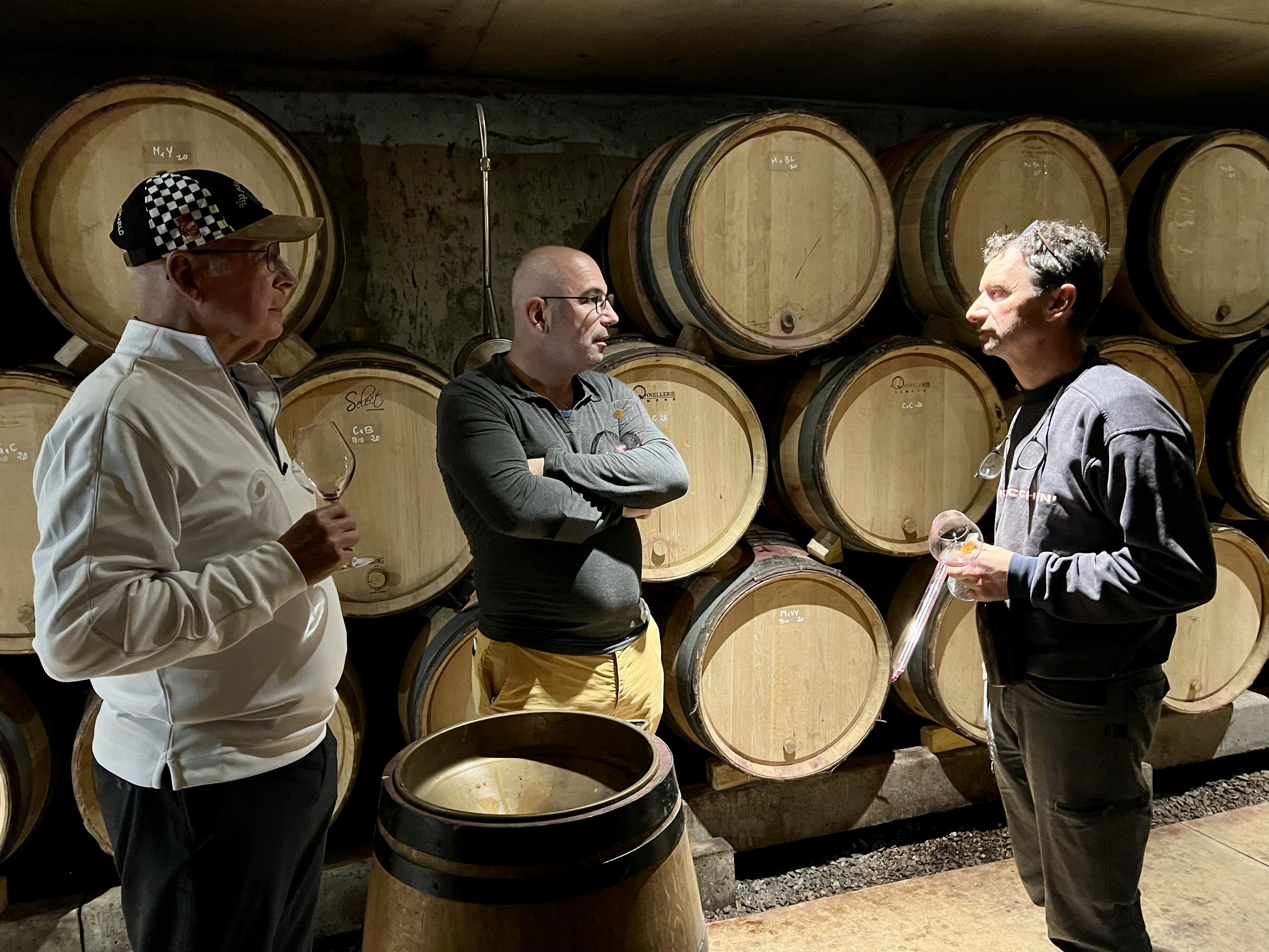 The first one was Hubert Lignier, who produces Premier and Grand Cru rouges and blancs. We spent an hour in his cellar barrel tasting six different 2020 and 2021 wines. In this cellar we began to fully appreciate the French approach of a larger taste and chewing the wine to fully appreciate it, then spitting it out. It took us a while, but we finally realized that we could only enjoy it if we followed that approach. The custom here is to pour any wine left in your glass back into the barrel. There is plenty of alcohol to sanitize anything one might “deposit”. At the end he opened a small unlabeled bottle of 2016 to taste to appreciate what four years adds, which is an even more rare treat.