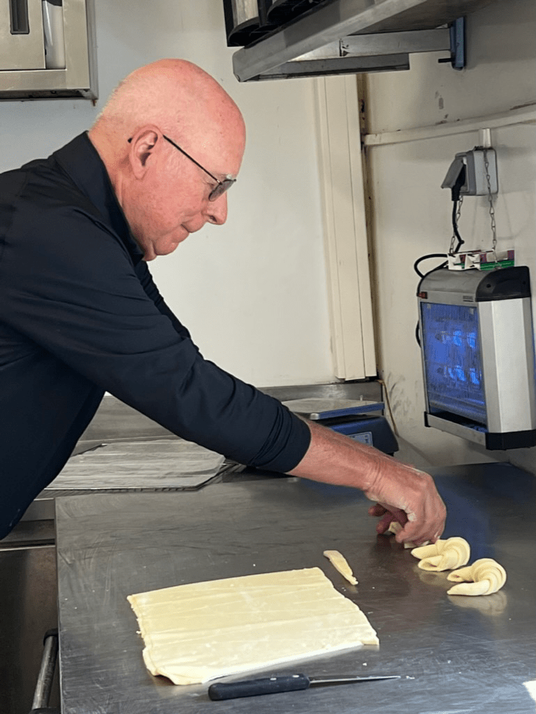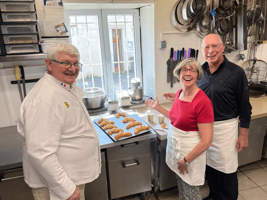 Monday morning found us first at the famous Hospices de Beaune with our private guide. It is normally filled with people, yet there were only three other people, and we spent 1 1/2 hours learning all about its history. Then we went to a baker, who took us into his shop to actually make croissants and baguettes the french way. Hands on.